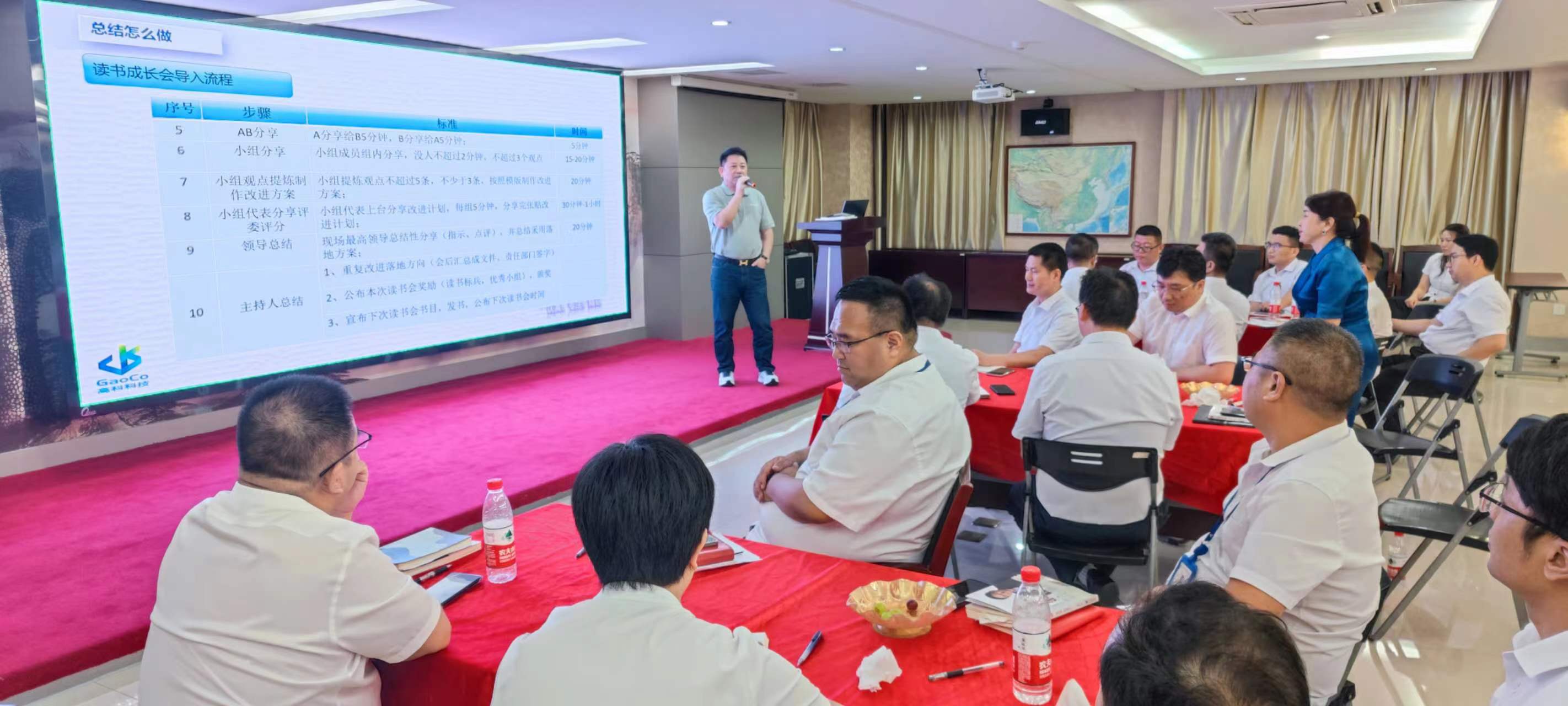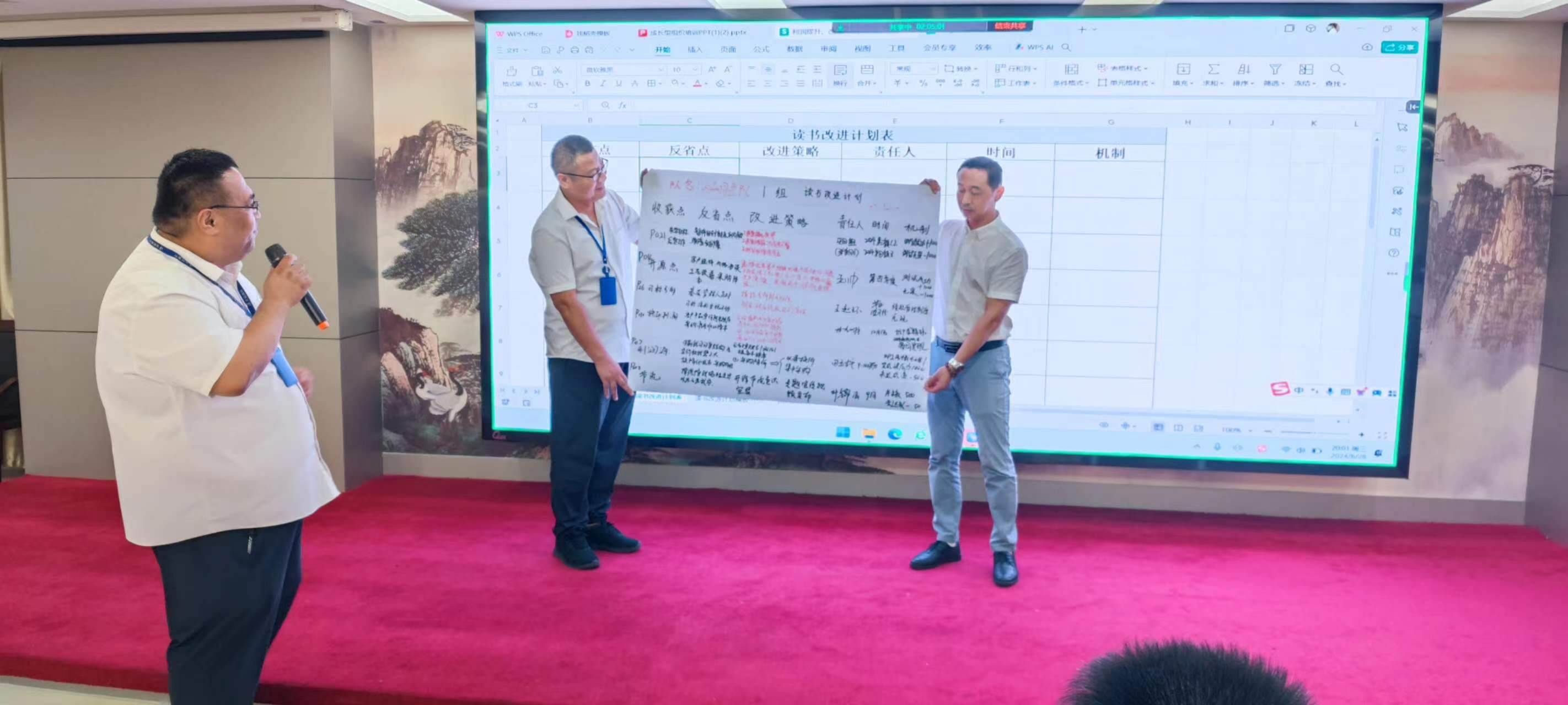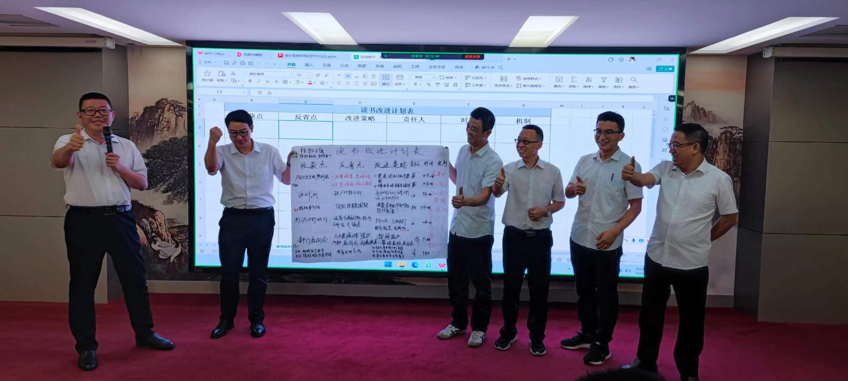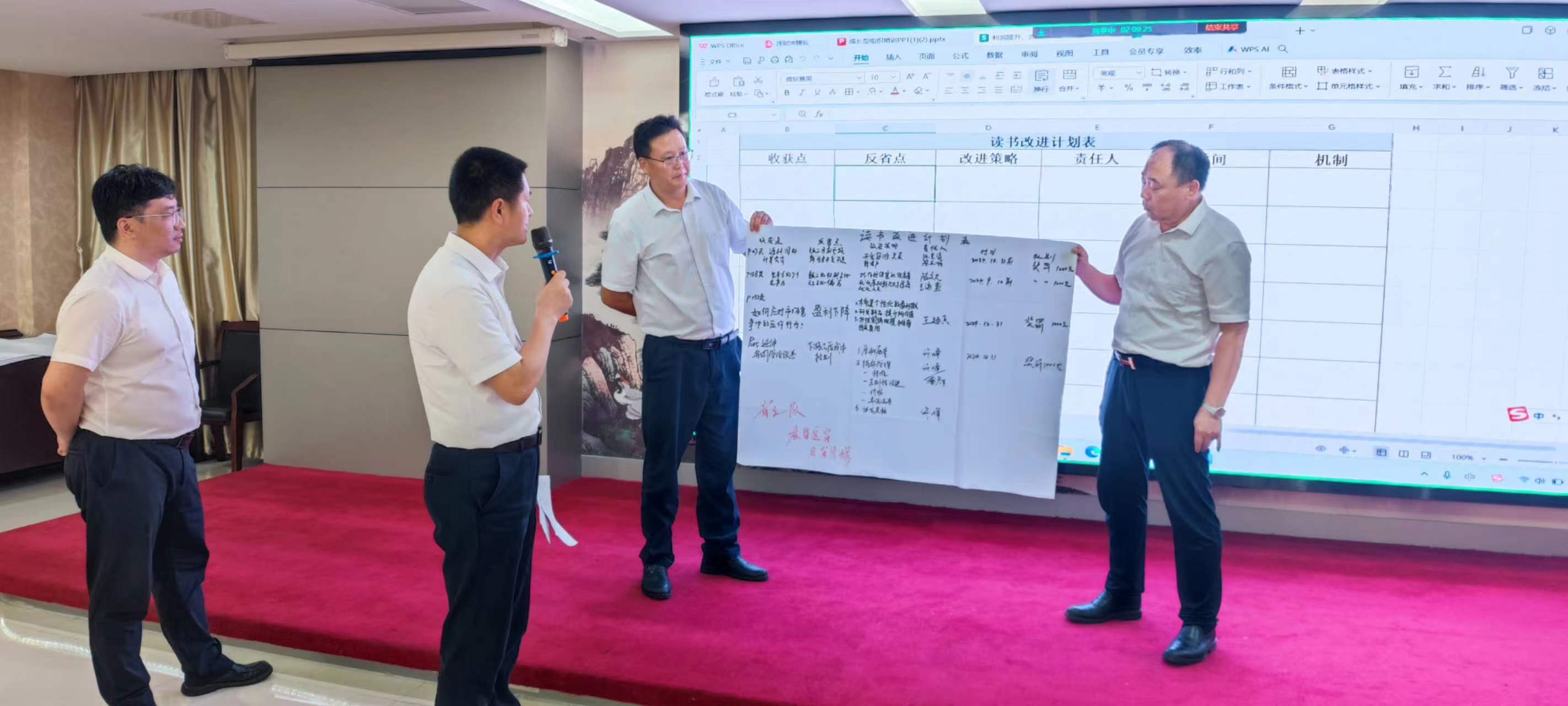 在交流環(huán)節(jié),每個(gè)小組組長(zhǎng)分別上臺(tái)發(fā)表感言,所思、所想、所悟,并聯(lián)系實(shí)際工作中的不足與欠缺之處,以及有待解決或尚未發(fā)現(xiàn)的問(wèn)題,大家暢所欲言,無(wú)不盡抒。每個(gè)小組根據(jù)收獲點(diǎn)、反省點(diǎn)、改進(jìn)策略、責(zé)任人、時(shí)間、機(jī)制相關(guān)內(nèi)容完成了本次學(xué)習(xí)的《讀書改進(jìn)計(jì)劃表》,并上臺(tái)宣讀、講解、公示。
